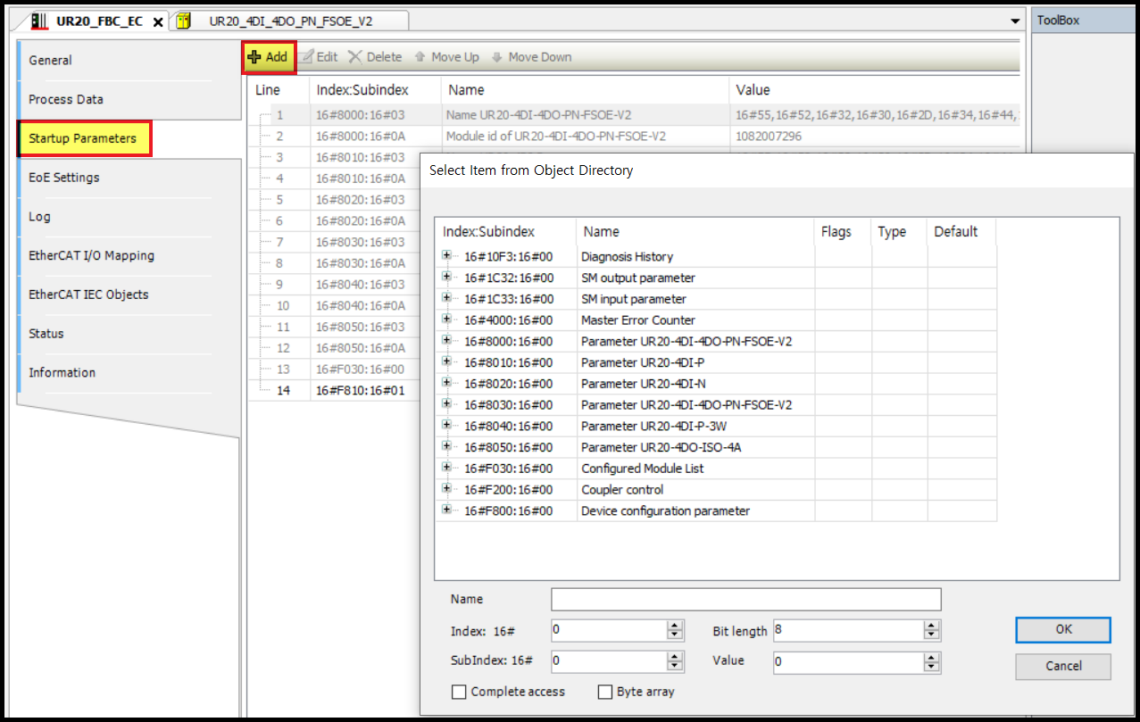 EtherCAT Bus Coupler를 먼저 추가하고, 그 아래에 I/O module 을 추가할 수 있습니다.