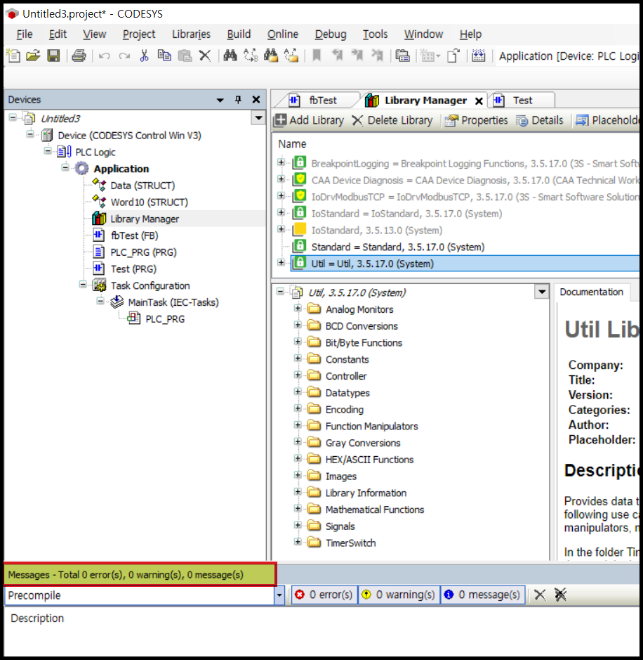 [Library Manager] 를 통해 "Util" 라이브러리를 추가하였습니다.